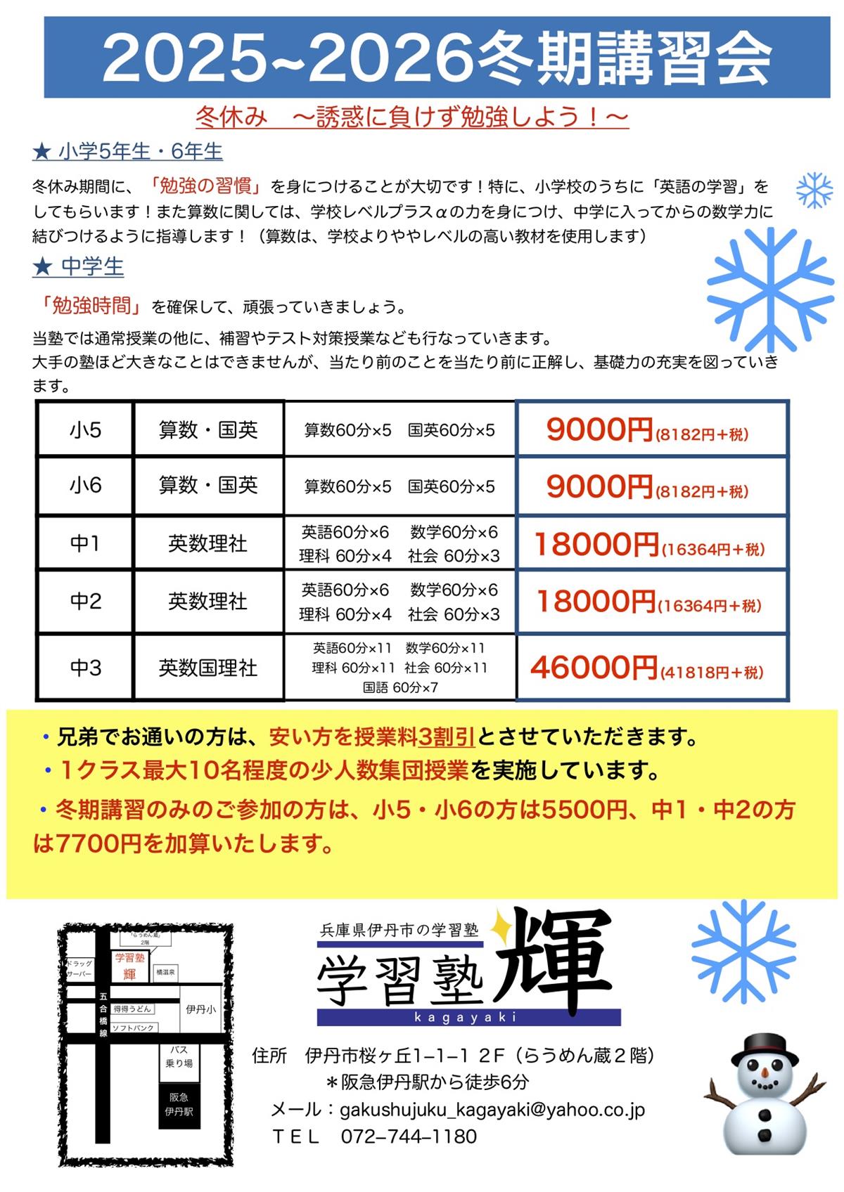 *学習塾輝の冬期講習・入塾説明会(予約不要)について