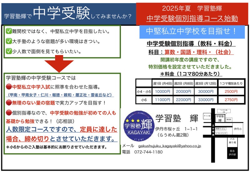 中学受験コース(中堅私立対象)始動!【人数限定】